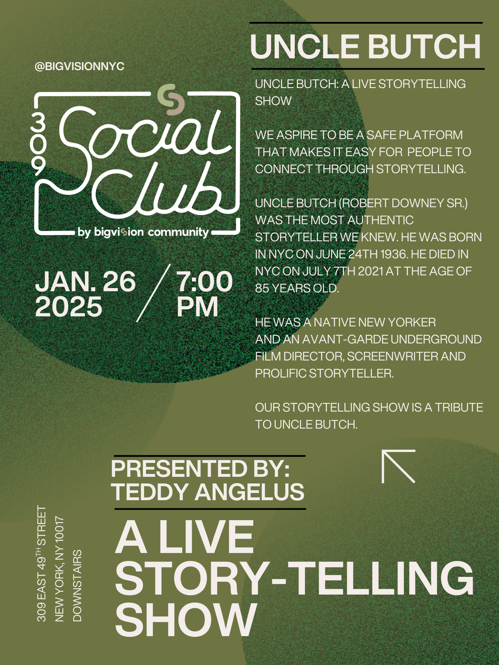 Teddy, a native New Yorker, grew up in an eclectic family of writers, actors and filmmakers. After his father fired him 3 weeks after joining the family business after graduating college, Teddy moved to Los Angeles to "find himself'. After a one year stint working at The Liquor Barn in Los Angeles he and his father "made up" and he moved back to NYC to begin working in his father's business once again. This time it took 4 weeks before his father fired for the second time. This is when Teddy decided to be an actor and started studying at HB Studios and got a job bartending and waiting tables at a fancy club on West 57th Street. After 2 years, his acting career was going nowhere fast so he shifted and started working in the field of corporate recruiting. Once he decided to get sober he started his own recruiting firm and built it up to 100+ recruiters before it was sold in 2010. After the sale, he ran a tech coding school and most recently pivoted his career once again; his passion for tennis led him to his current job, managing Member Services at The Roosevelt Island Racquet Club while he is producing Uncle Butch, a series of live storytelling events.
