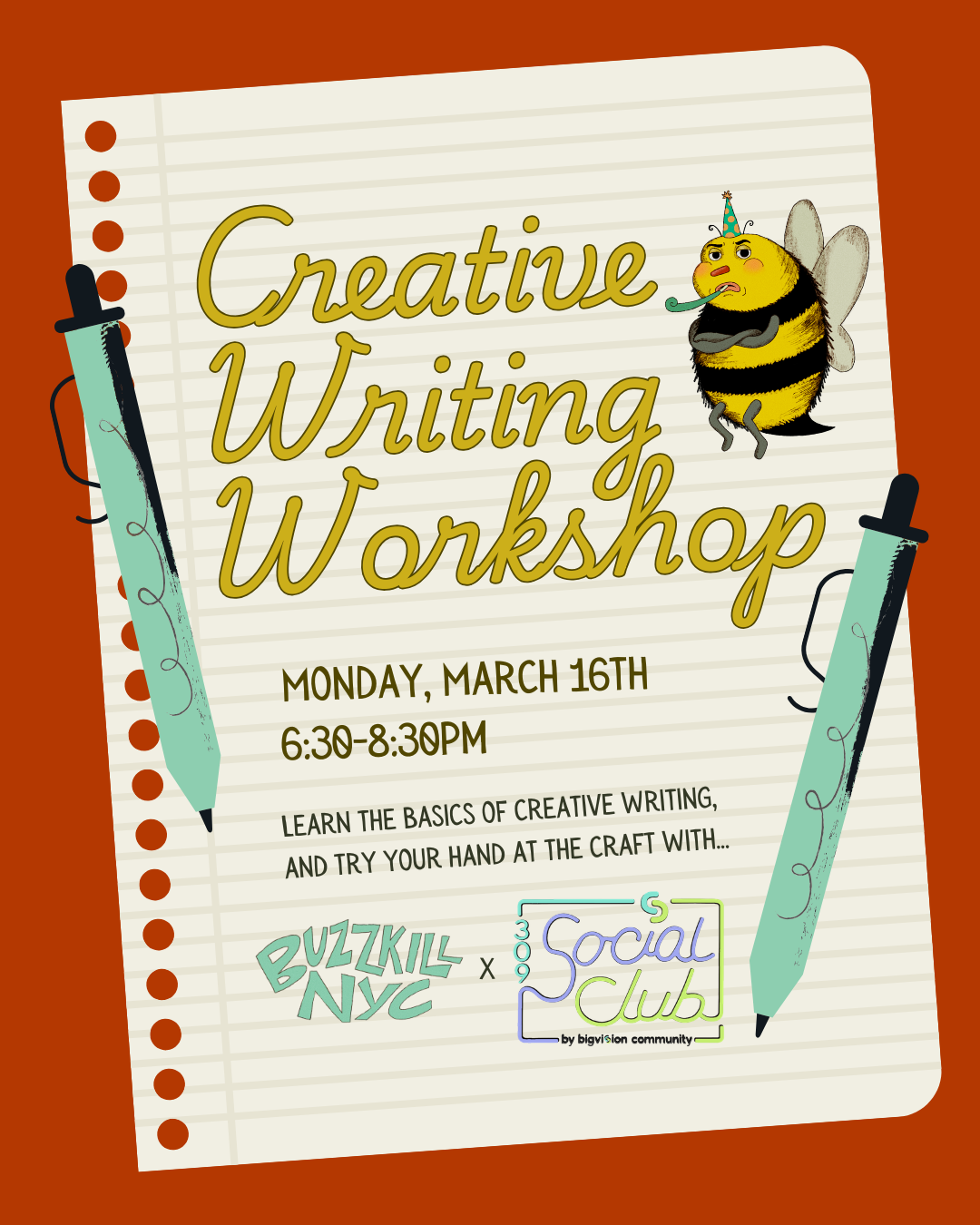 Buzzkill NYC and 309 Social Club are partnering with author Cullen Thomas for an interactive writing workshop designed to help writers strengthen their storytelling foundations!